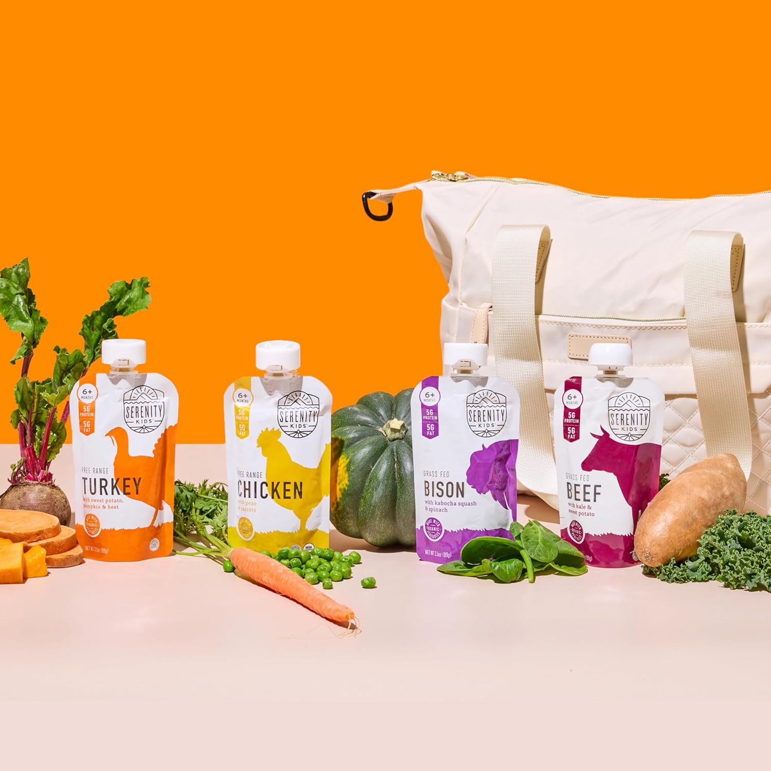 - ETHICALLY SOURCED MEAT: Dive into 8 puree baby food pouches packed with free-range chicken, grass-fed bison, turkey, and beef. All meats are from small farms practicing regenerative agriculture, ensuring your little one gets a nutrient-rich start with our tasty chicken baby food, bison, turkey baby food, and puree meat pouches