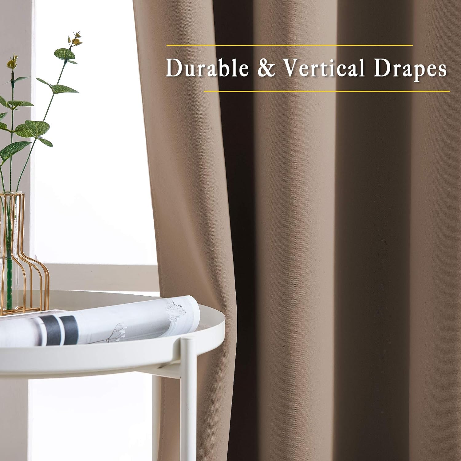 NICETOWN Insulated Blackout Curtains and Drapes - Microfiber Energy Saving Thermal Insulated Solid Grommet Blackout Draperies for Kitchen (1 Pair, 66 inches by 54 Inch, Cappuccino)