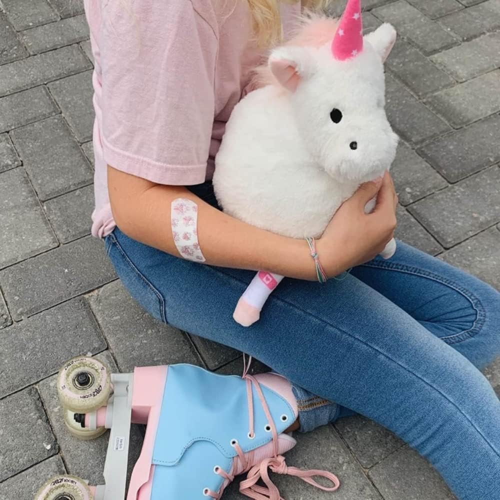 - π¦ΈββοΈ The Set Includes: This kids first-aid kit plush includes 1-character ice pack (for hot & cold use), 12 matching Lily Unicorn bandages, 6 Lily Unicorn stickers, and 3 triple ointment packets. This infant first aid kit is packed in a secret zipper pouch on the stuffyβs back.