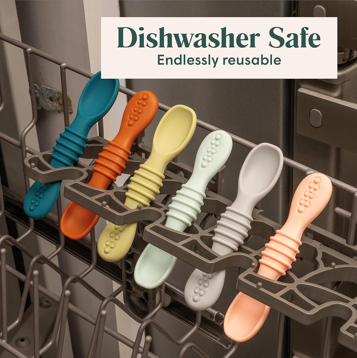 - The Perfect Size for Little Hands - A ribbed handle means your child can comfortably grip this silicone baby spoon as they learn to eat. There’s also a textured end that’s gentle on teething gums.