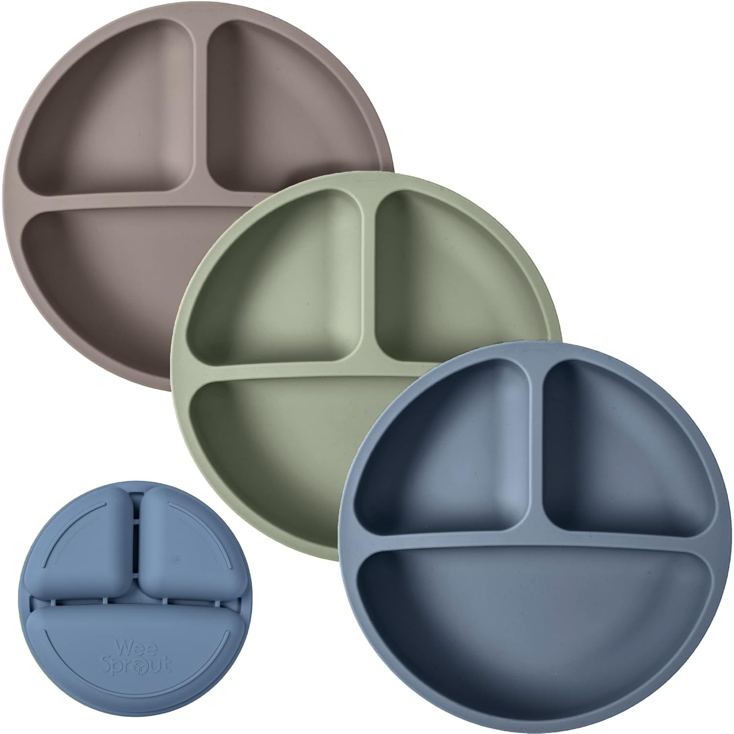 WeeSprout Silicone Plates for Babies & Toddlers (3 Pack) 100% Food-Grade Dishes for Self Feeding, Divided Design & Raised Edges for Picky Eaters, Dishwasher & Microwave Safe Weaning Supplies