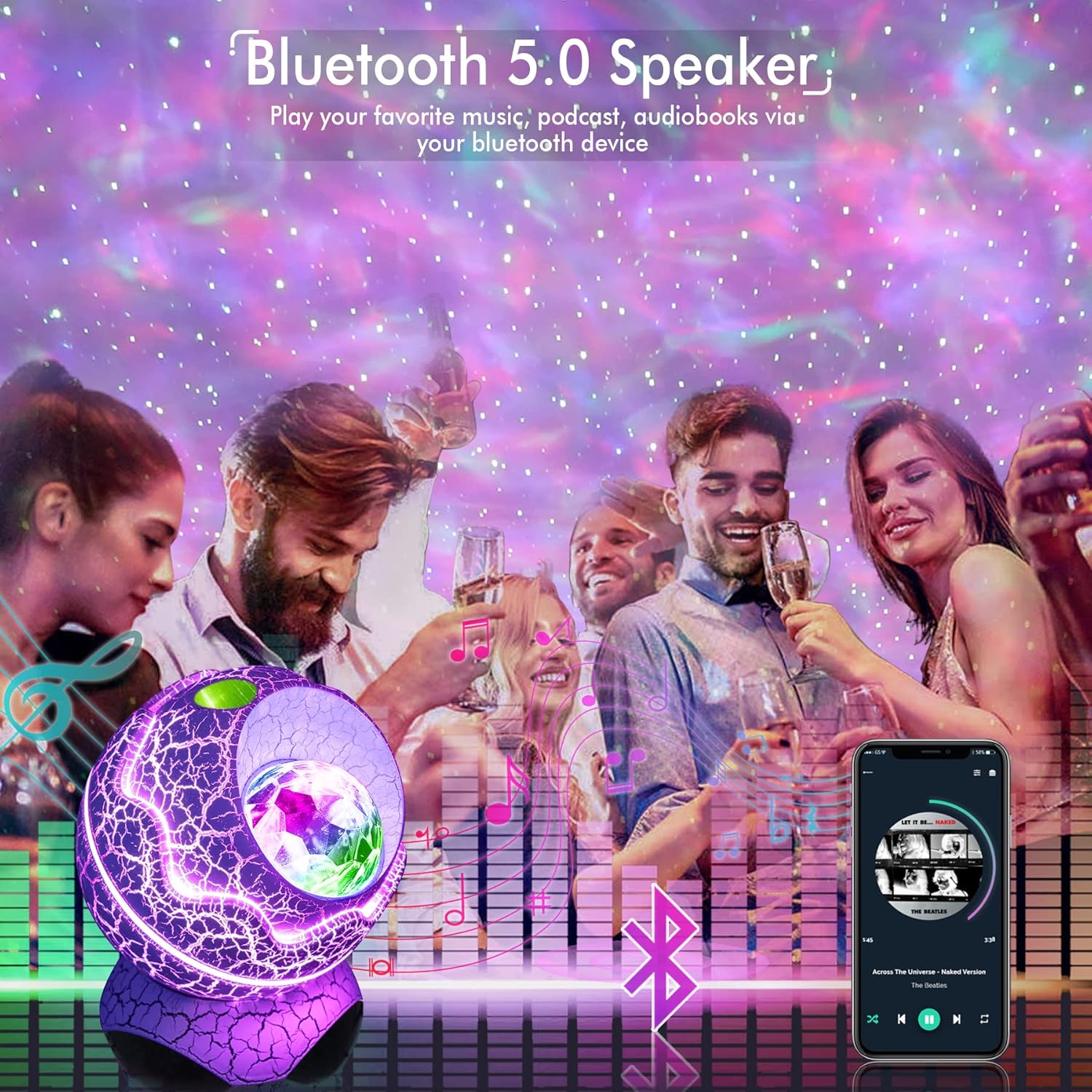 - Bluetooth 5.1 Speaker & Voice Control: The galaxy projector features a built-in Bluetooth speaker. Connect your device via Bluetooth to play music through the galaxy light projector and watch in amazement as the little stars blink and the nebula cloud moves rhythmically to the beat. You can activate the sound function using the remote control, and night lights will flash and change according to the rhythm of the music or in response to clapping your hands, resulting in an immersive experience