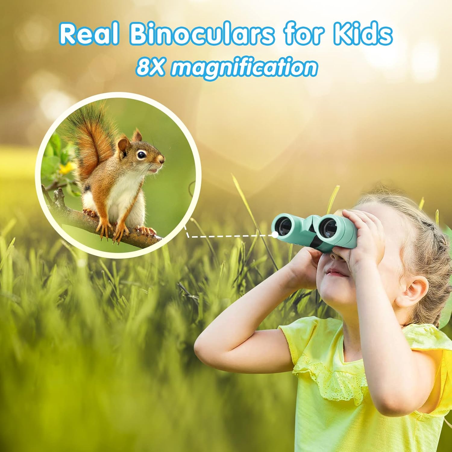 - Professional Real Binoculars: 8x21 high-resolution with adjustable focus wheel and diopter setting, ensure clear, bright and 8 times closer view for children to enjoy the best watching experience. Not just a toy binoculars, but can stand for rough use