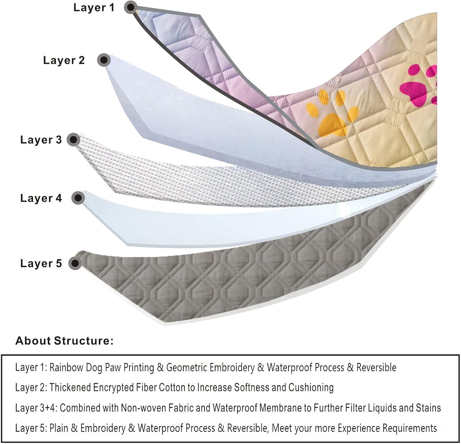 100% Waterproof Dog Bed Cover 102x82 in Reversible Changing Pad Reusable Camping Mat for Kids/Pet/Dog/Cat Washable Geometric Embroidery Blanket Patchwork Rainbow Dog Paw Printed+Gray