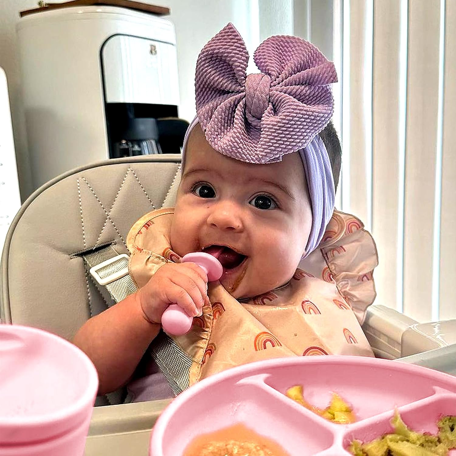 TalkTools ITSY Tiny Silicone Spoons – Twin Pack Soft Silicone Self-Feeding Training Spoons for Kids & Toddlers, Anti-Choking Flange Guard and Non-Slip Handle (Bubblegum)