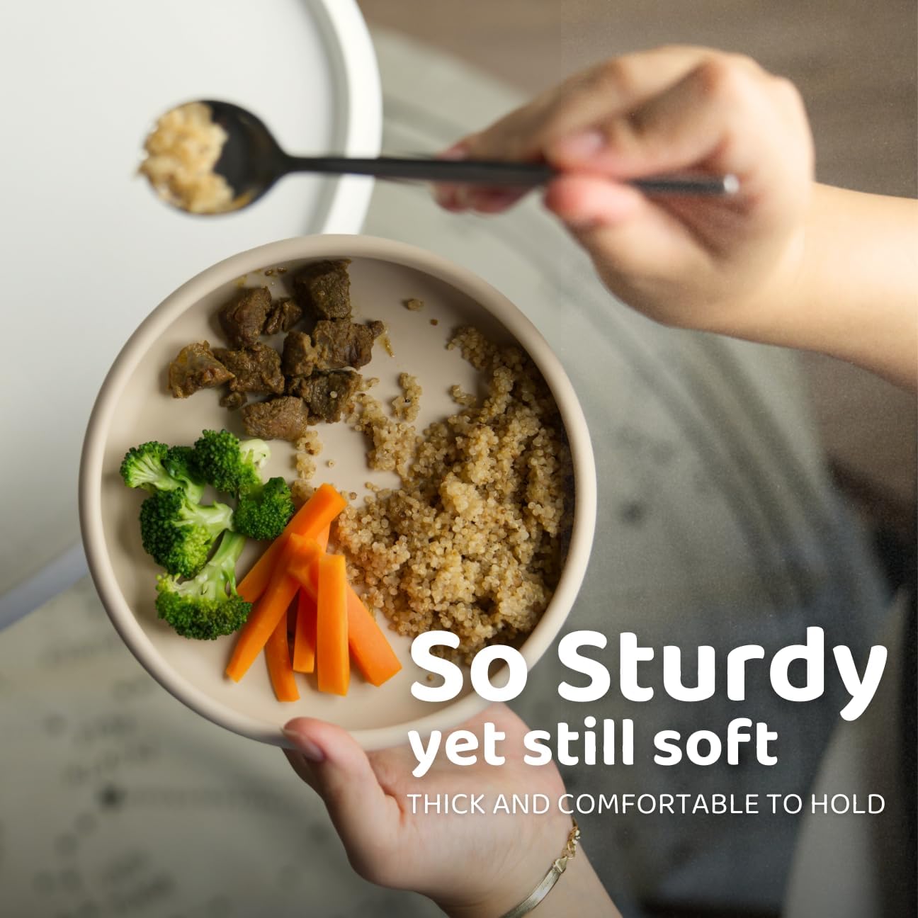 - A Nurturing Mealtime Experience - We designed our baby-led weaning silicone plates for kids with your comfort and convenience in mind. It doesn't feature saggy mats or suction cups, allowing you to comfortably hold these toddler plates while feeding your baby when they need your support.