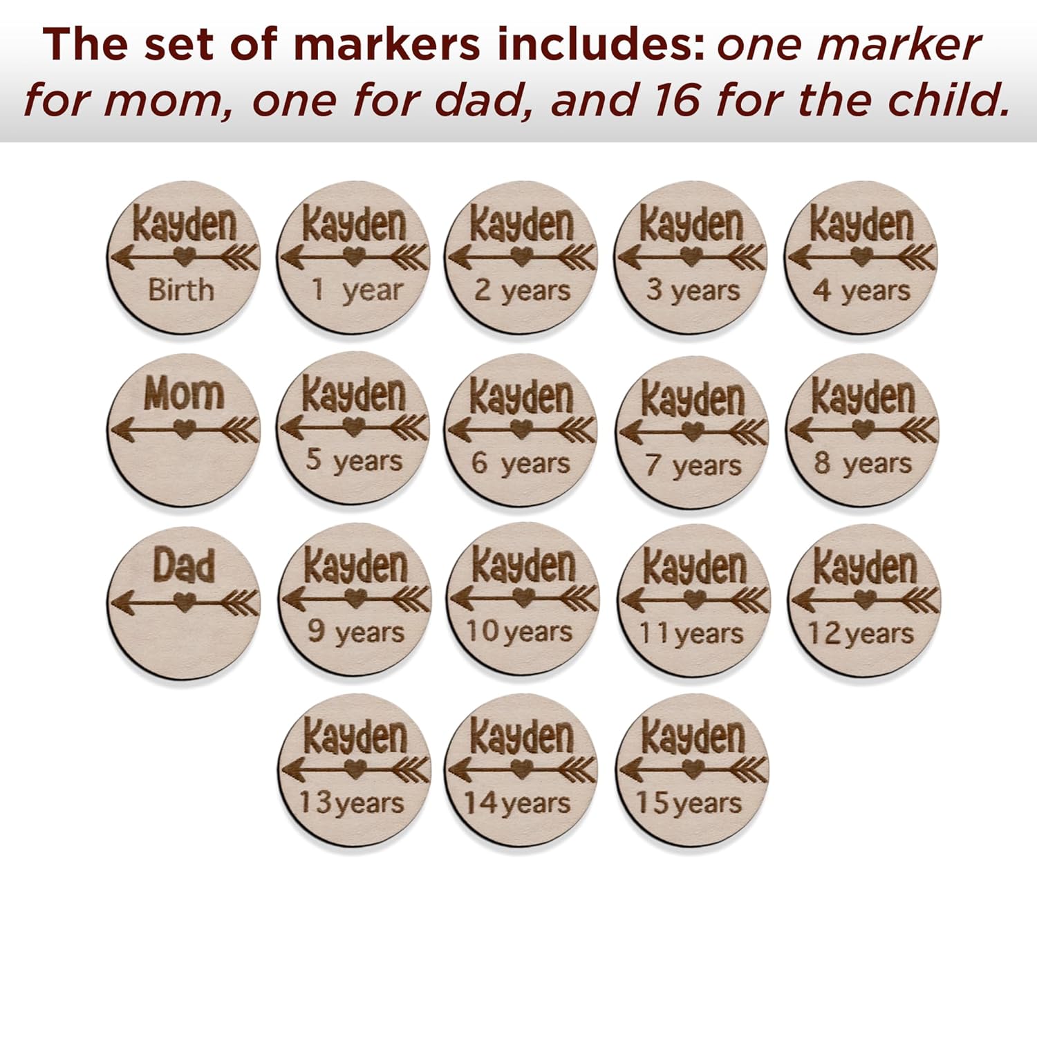 - Set included: one marker for mom, one for dad and 16 personalized(from birth to 15 years) with child's nameEasy to hang on a ruler: comes with double-sided stickers