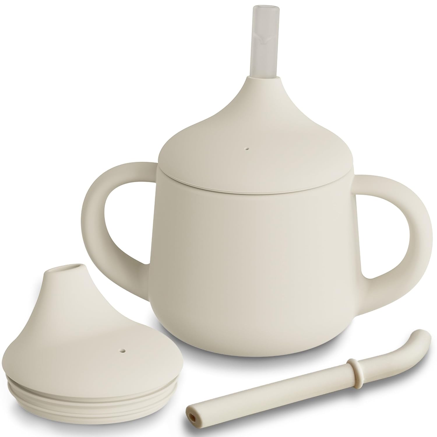 - ăSoft & Reliable Food Grade Siliconeă Our baby straw cup are made from 100% food-grade silicone and are free of BPA, PVC, Phthalates, and any other heavy metals. The Soft silicone spout and straw are gentle on developing teeth and gums - but sturdy enough for any little teether! That means Moonkie sippy cup are ideal for babies learning to drink by themselves.