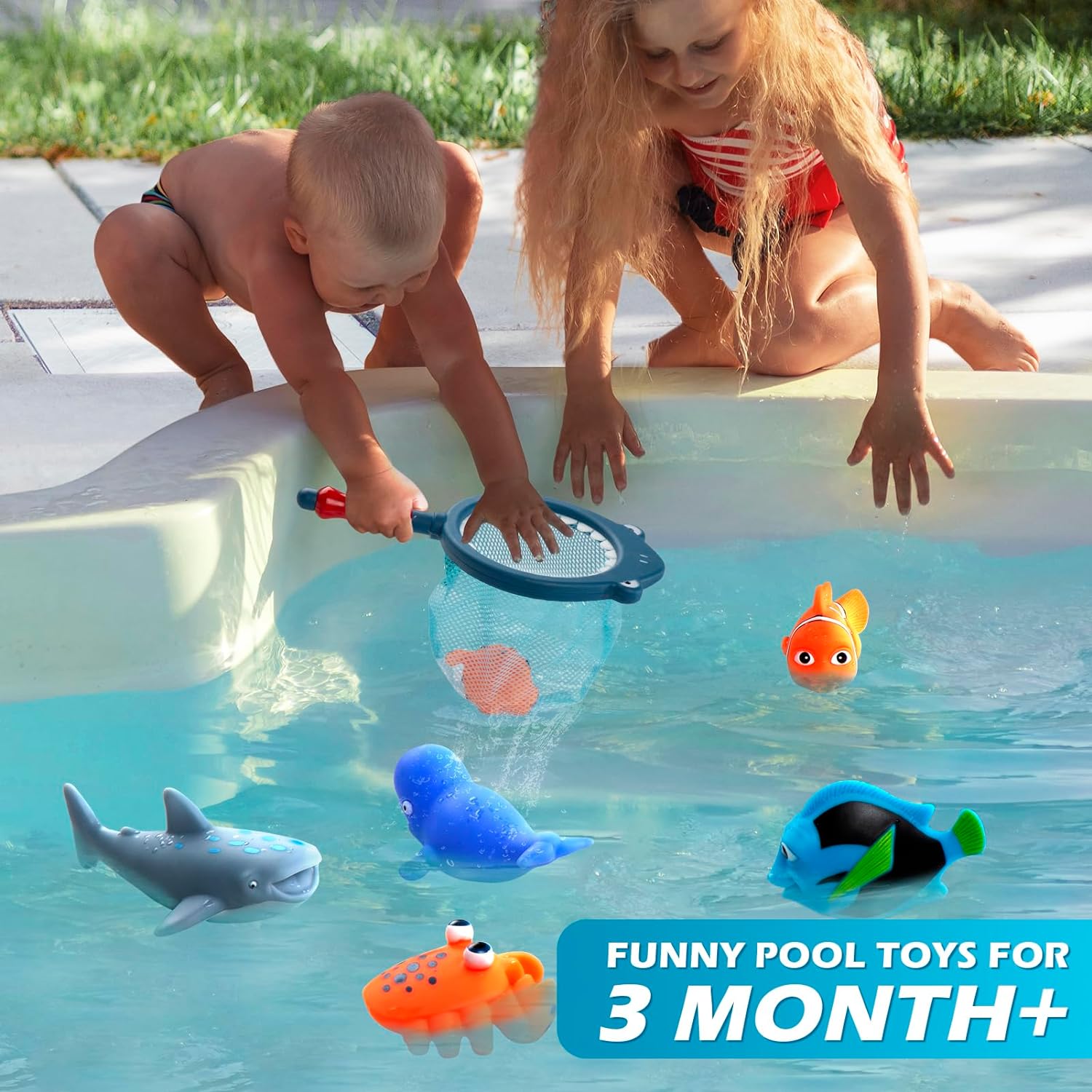 - Make bath time a captivating adventure with our bath toy set. Watch as the adorable marine creatures float on the water surface, while the shark net opens its big mouth to chase the little fish. Little ones will love role-playing and even use the toys to form words, making bath time both fun and educational!