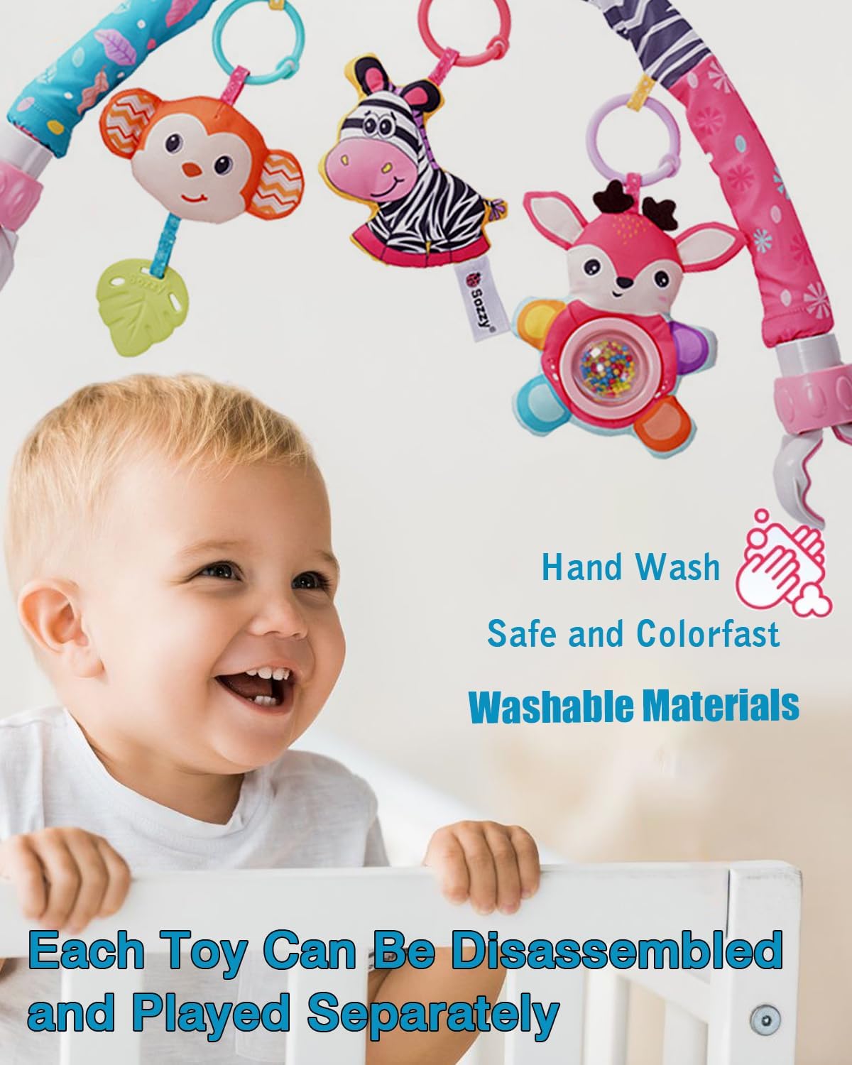 Pau1Hami1ton Baby Stroller Arch Toys, Car Seat Toys,Bouncer Toy Bar/Mobile for Bassinet,Adjustable Baby Hanging Toys Fit for Crib Bed,Stroller,Car Seat.S-19(Pink Zebra)