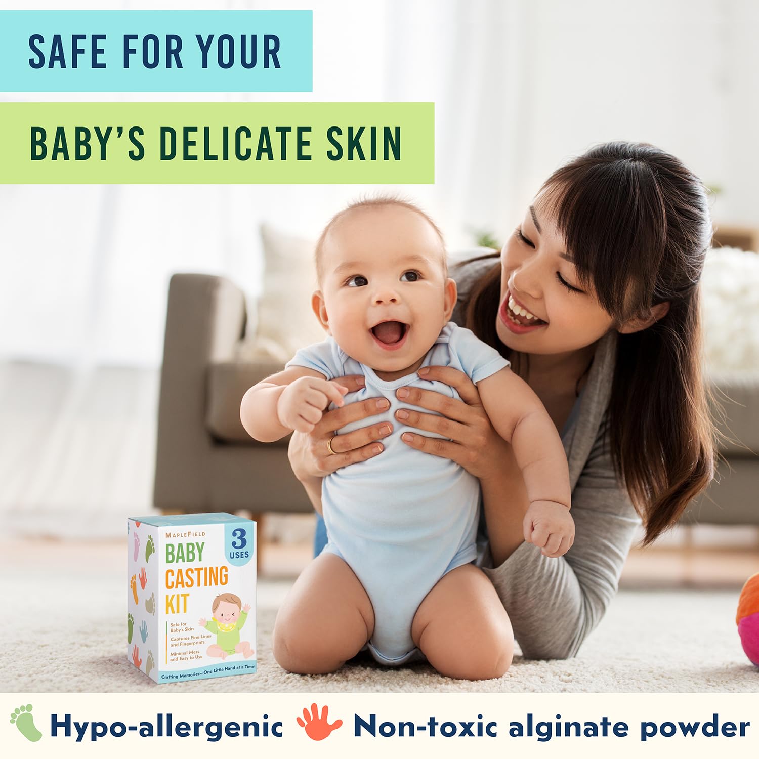 - Safe For Delicate Skin: Crafted with non-toxic, hypoallergenic materials, Maplefield's Hand Casting Kit Baby is gentle on your baby's skin. Always supervise the casting process for added safety