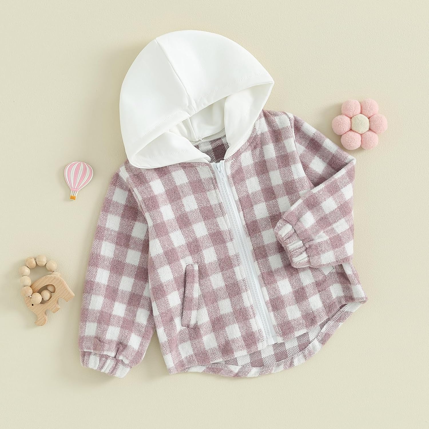 - 【Festival Baby Outfit】: Fashion baby boy/girl clothes, plaid jacket, long sleeves, zip up closure, baby flannel hoodies, hoody can be removed