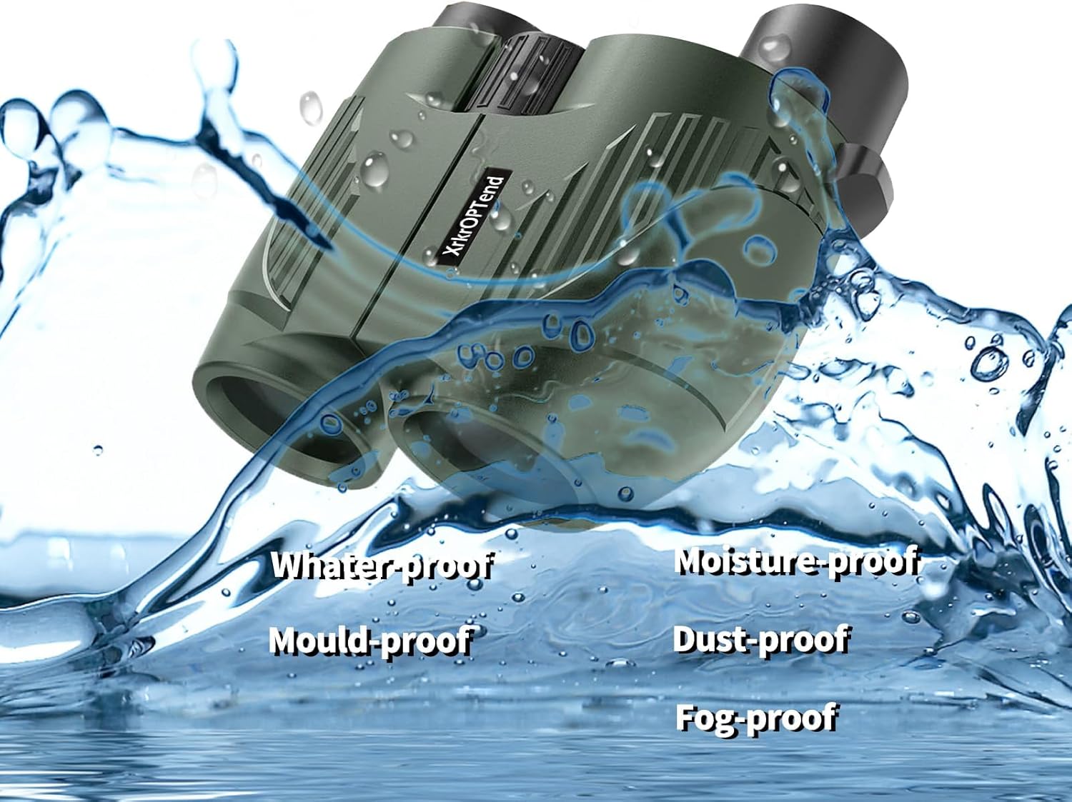- ăLife Waterproof ,Fog proof and no slipăDurable structure with rubber textured armor for shock-resistance and Anti-slip .The binoculars is classic , simple, non-slip design. It has become the most cost-effective choice for men and women in bird watching, hunting, outdoor sports, watching idol performances, rugby matches and so on.