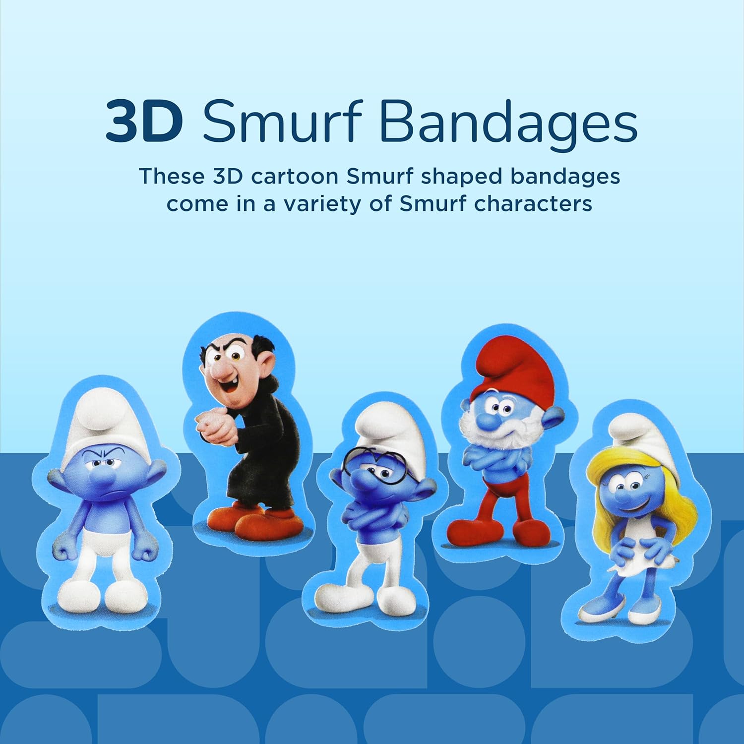 BioSwiss Bandages, The Smurfs in 3D Shaped Self Adhesive Bandage, Latex Free Sterile Wound Care, Fun First Aid Kit Supplies for Kids and Adults, 24 Count Box
