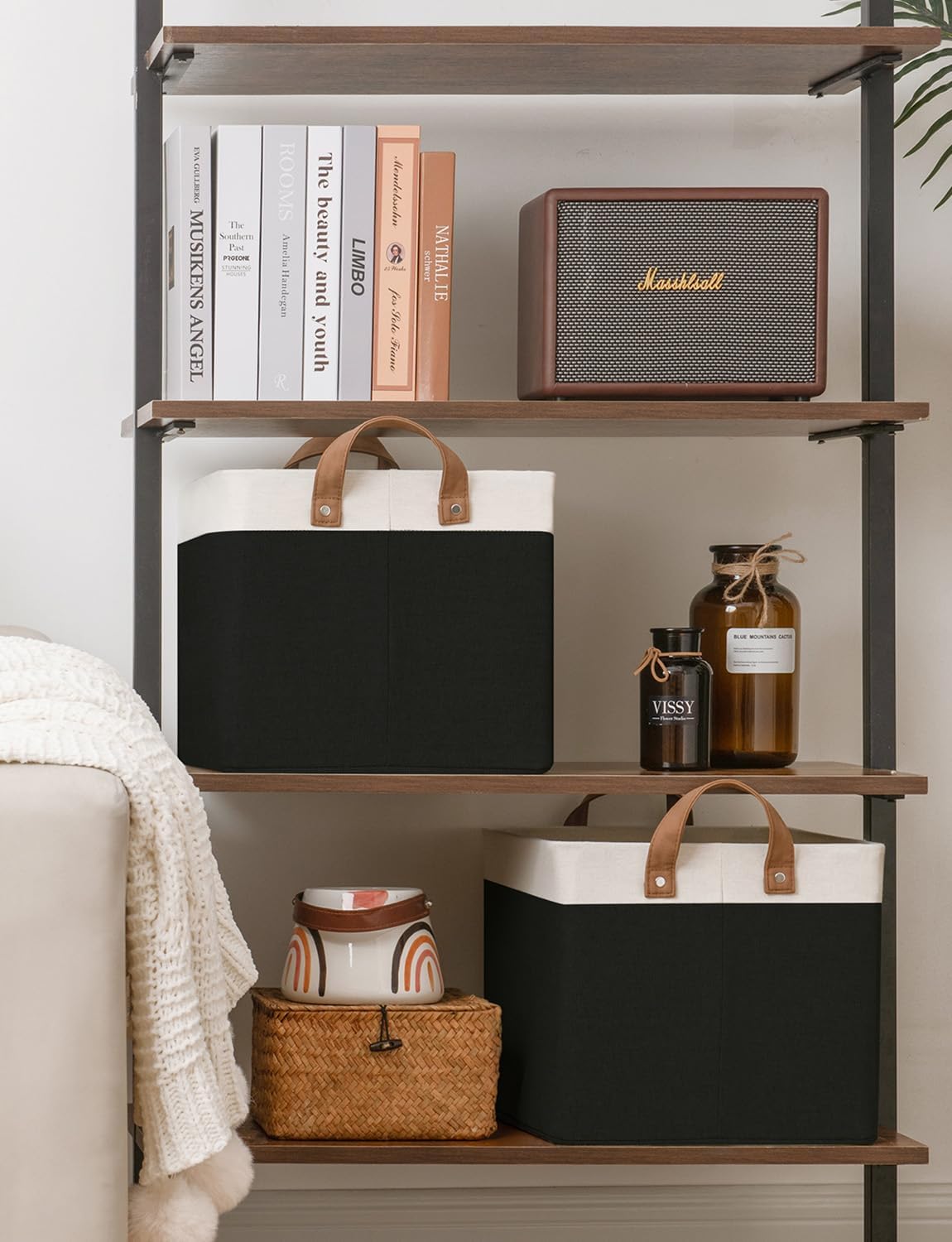 StorageWorks Storage Bins, Fabric Storage Bins for Shelves, Large Storage Baskets with Metal Frame, Closet Baskets and Bins with Handles, Black and White, 2-Pack