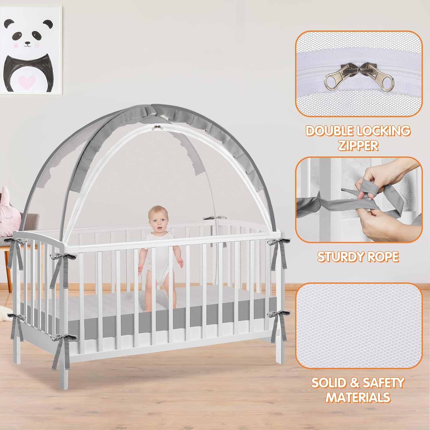 - Crib Tent To Keep Baby From Climbing Out: Keep your baby safe and secure in the crib with our crib tent for baby cribs. This crib net to keep baby in not only prevents your baby from climbing out of the crib and falling, but also effectively prevents limbs from getting caught in the rails, giving parents more peace of mind.