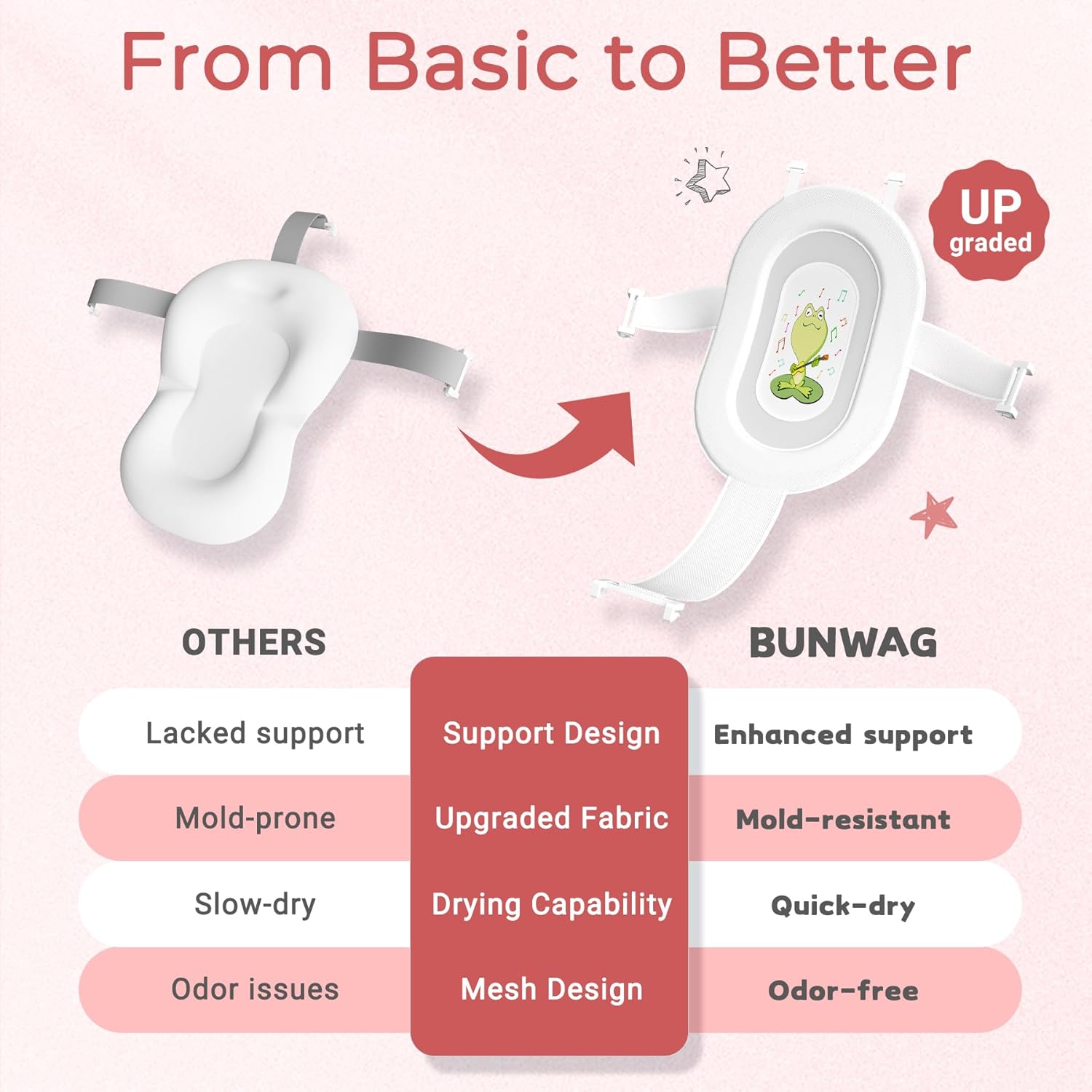 - Comfort First: With a soft cushion and adjustable shoulder straps, newborn bathtub offers head and neck support, providing infants with a delightful and safe bathing experience