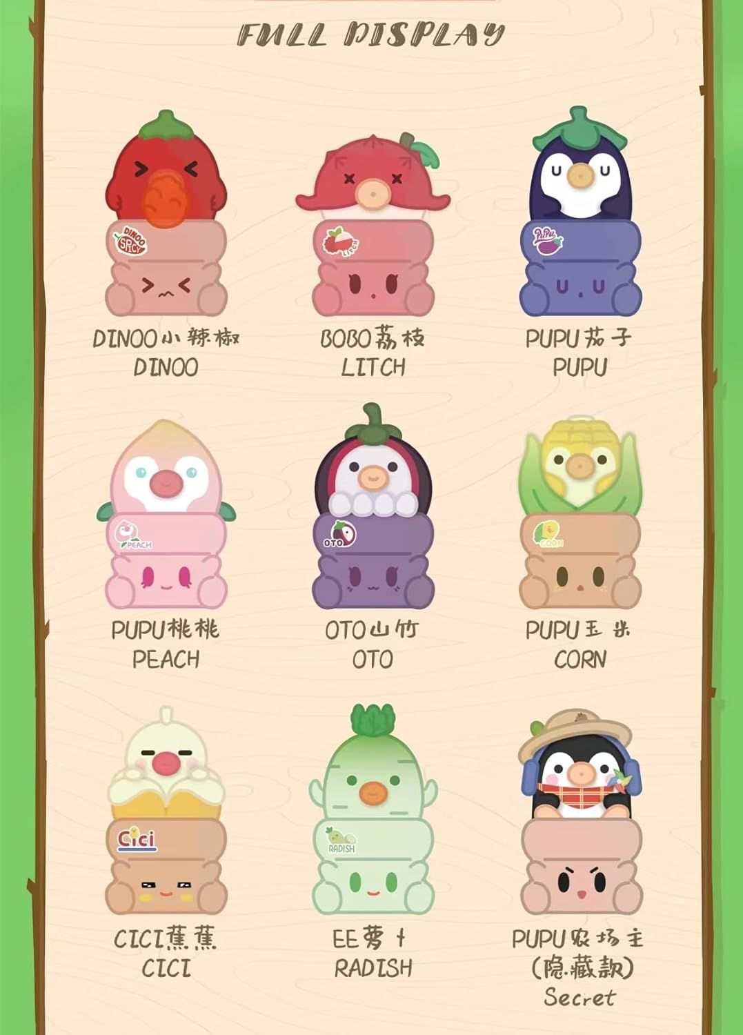 - Penpot Hugging Vegetable Series Figures: It is a collectible Figure. This series has 8 regular figures and 1 hidden edition to collect.