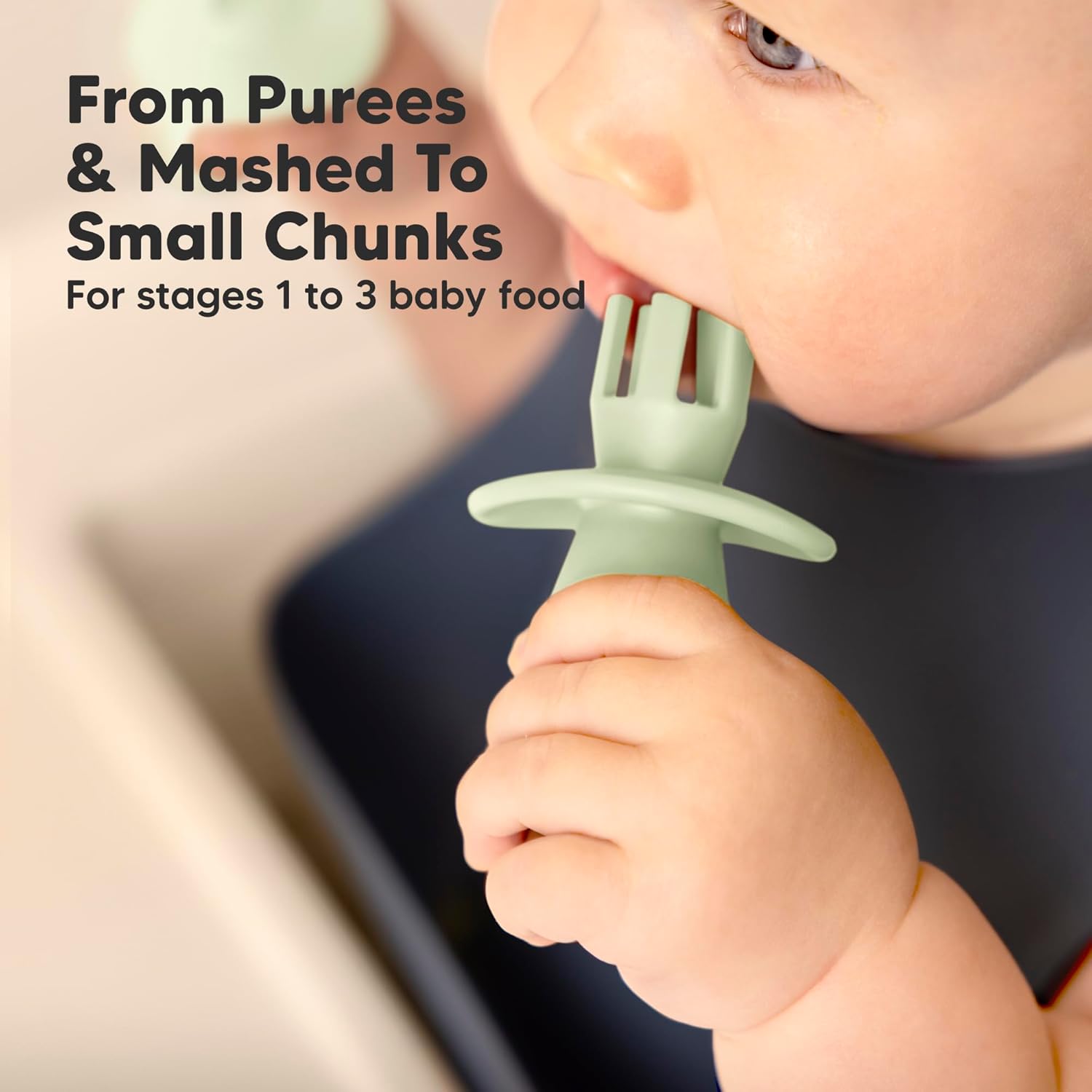 - Safer Silicone - Our 4-pack KeaBabies Lil' Prep Silicone Baby Spoon and Fork Set is made with 100% pure food-grade, BPA-free premium soft silicone. The sturdy and durable construction is crafted for infant teething gums & perfect for baby first food.