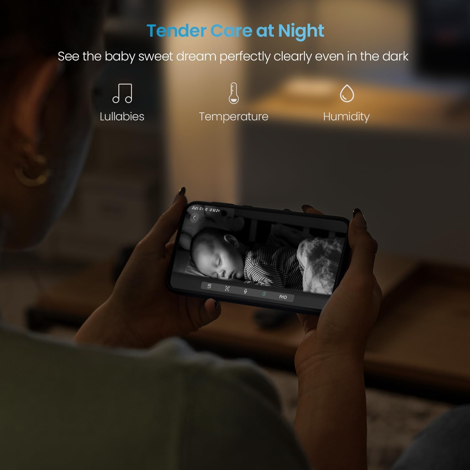 - 🔉Intelligent Care: Protect your little one with our smart baby monitor, featuring motion and sound detection sensors that alert you to any activity. Monitor the room's temperature and humidity levels for a comfortable environment, ensuring your baby's safety and well-being are always prioritized