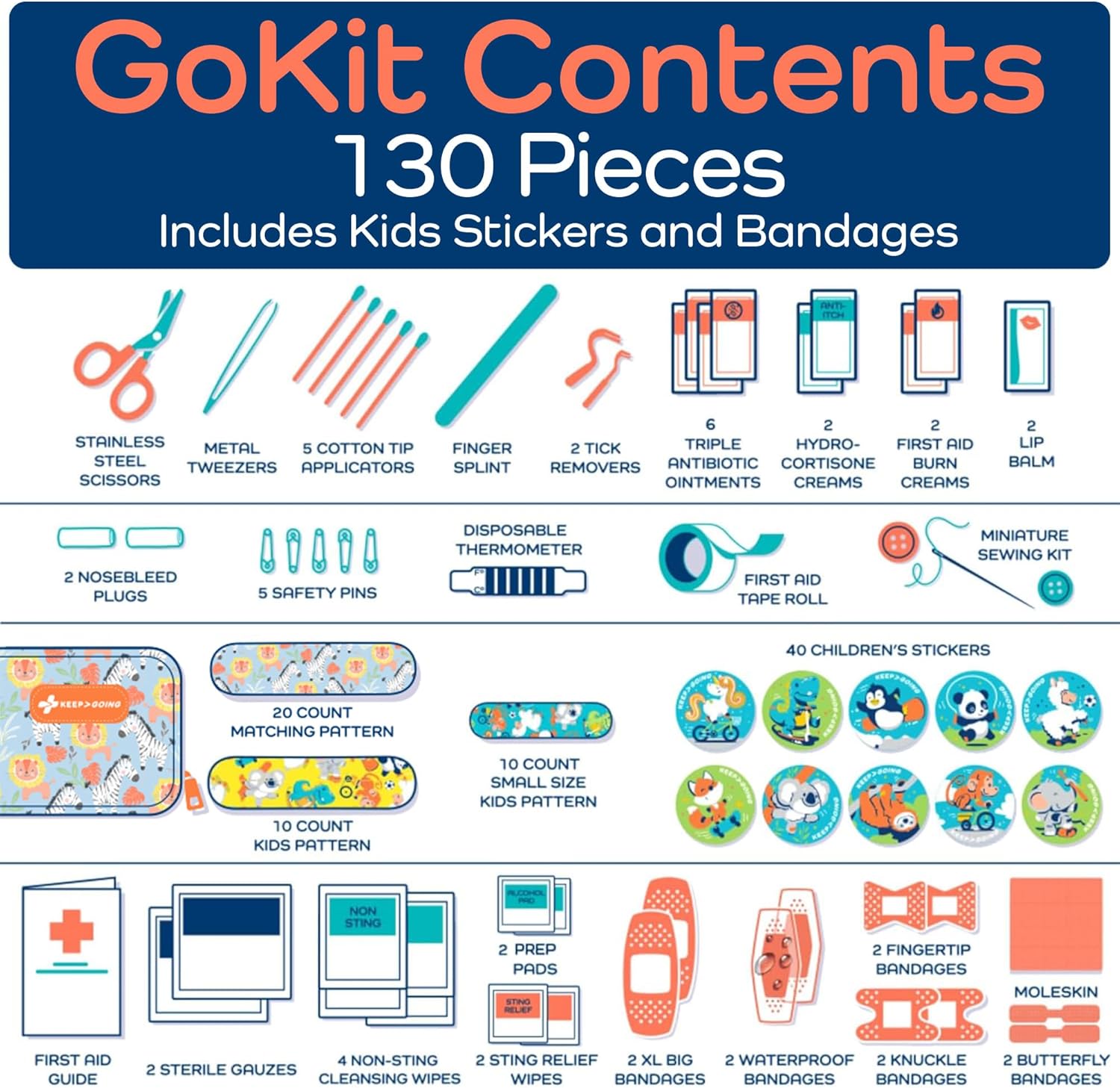 KeepGoing Travel First Aid Kit for Kids – 130 Pc. for Car, Home, Purse, Diaper Bag & Backpack with Latex-Free Bandages - Mini First Aid Kit Travel Size TSA-Approved