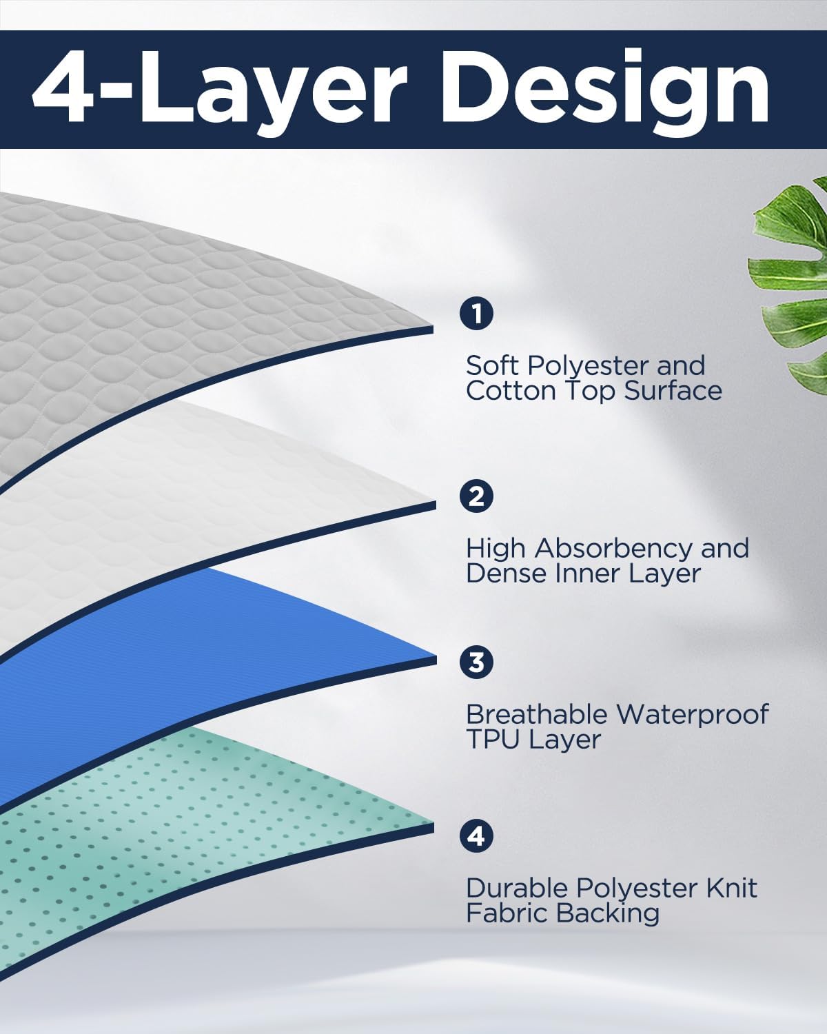 - [100% WATERPROOF] - The bed pads made of 0.03mm high quality TPU waterproof layer ,which is much thicker than similar products in the market (0.02mm) ,and also will be beneficial to its service life.