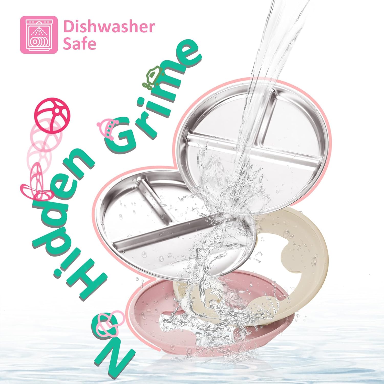 - Safe & Pure Stainless Steel: The smooth, BPA-free, lead-free stainless steel surface of these kids plates doesn’t absorb oils, soap, or odors—solving common issues with traditional baby suction plates. Enjoy fresh, natural-tasting meals every time