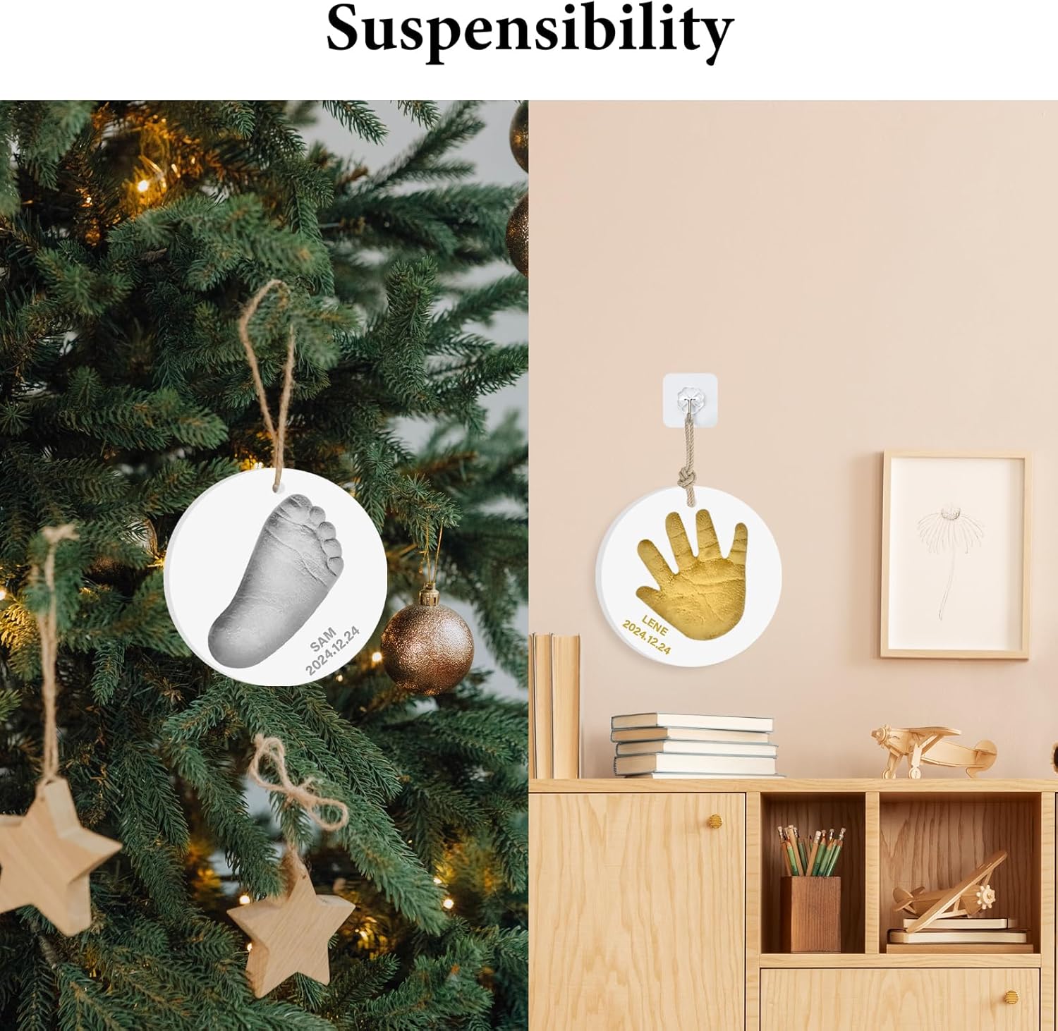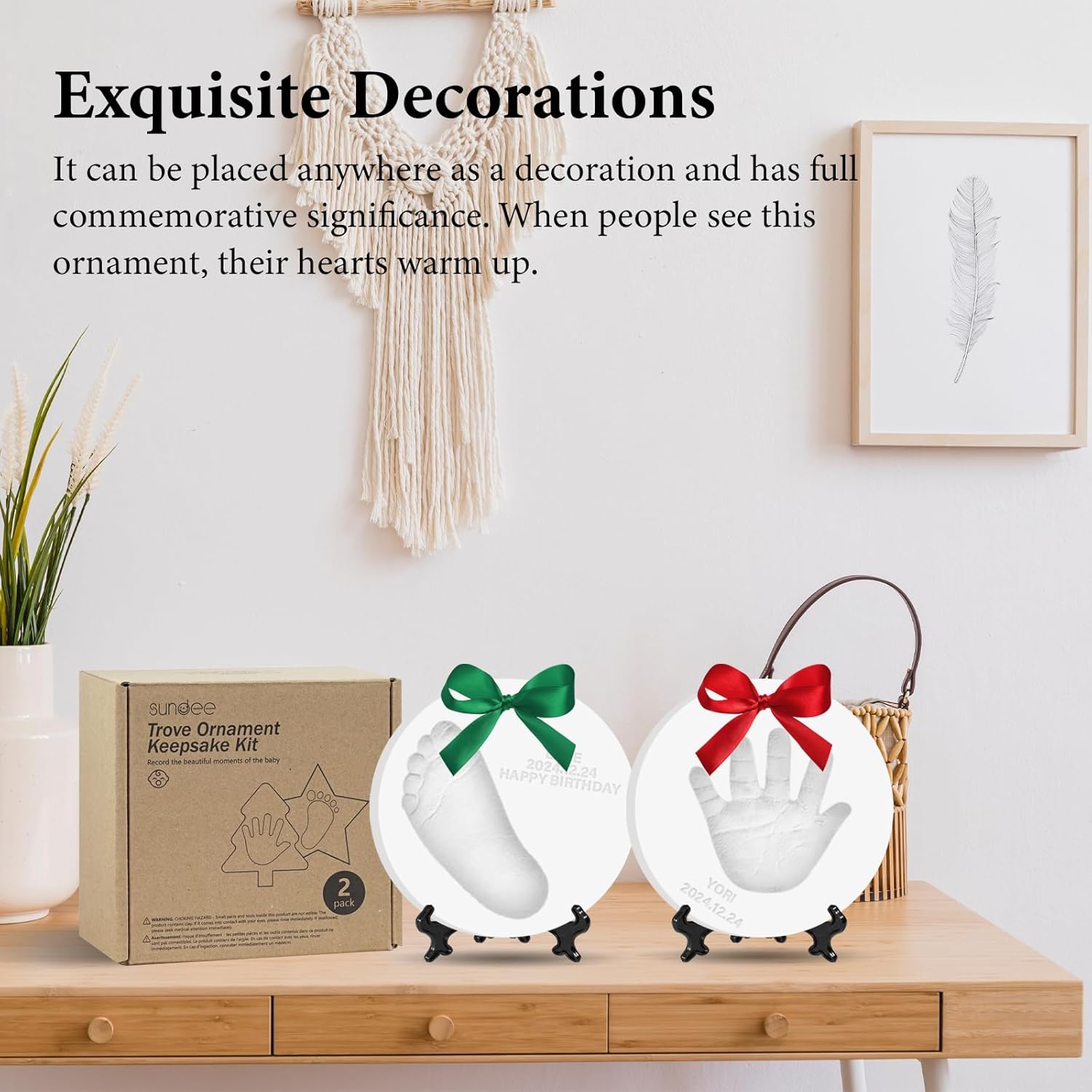 - Record Your Baby's Growth:Create Meaningful memories Don't let newborn exhaustion erase those precious memories.This baby souvenir clay ornament captures their perfect little handprint, footprints, fingers and toes. It's a must for newborns!