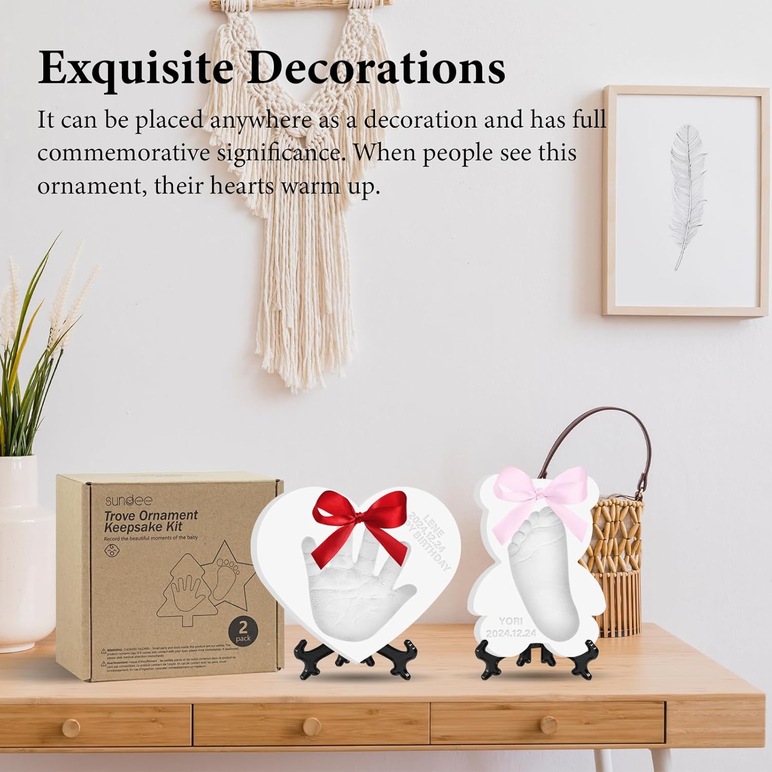 Baby Hand & Footprint Keepsake Kit - Personalized Handprint Footprint Ornament for Newborn Babies, New Mom Gifts, Baby Shower & Registry, Nursery Picture Frame, Pet Paw Print Ornament