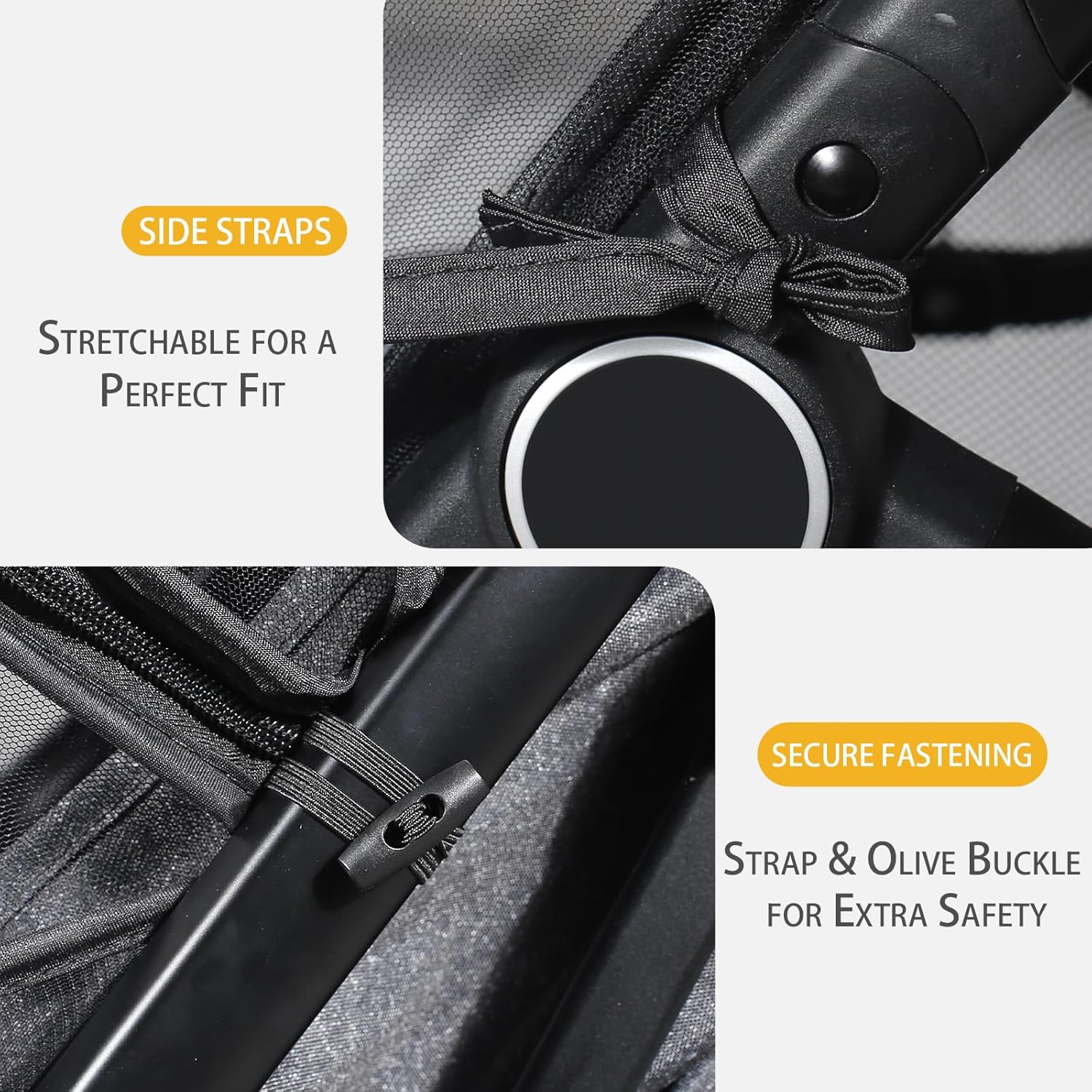 - 【Convenient Access with Enhanced Support】Featuring a 2-way zipper for quick access, mosquito net stroller includes a PE elastic 3D support system that prevents sagging, ensuring stable coverage and avoiding discomfort or pressure on your baby, while offering wind-resistant protection