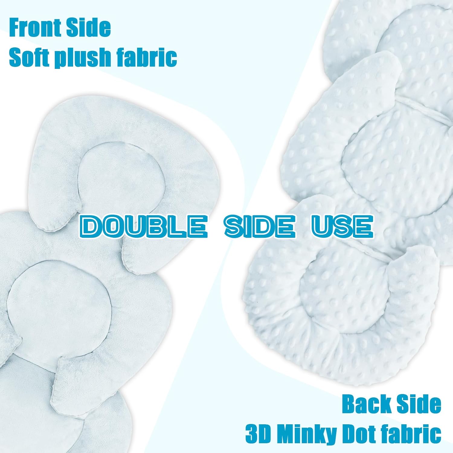 - Double-sided Use: The front and back of the baby car seat cushion are made of soft plush fabric and 3D fabric respectively, you can choose one side