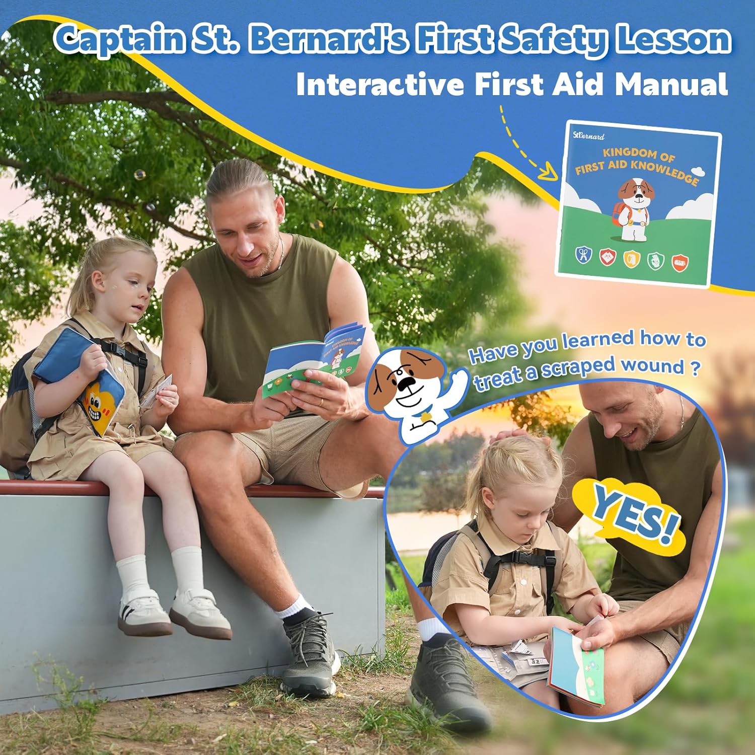- 💟[[Captain St. Bernard Leads the First Lesson] Meet Captain St. Bernard—the friendly pup on our logo, guiding kids through every page of the cartoon manual. This beloved mascot turns first aid into a fun adventure, teaching little ones to stay calm and handle boo-boos step-by-step. More than a kit: it’s their first safety class, led by your child’s new favorite St. Bernard friend