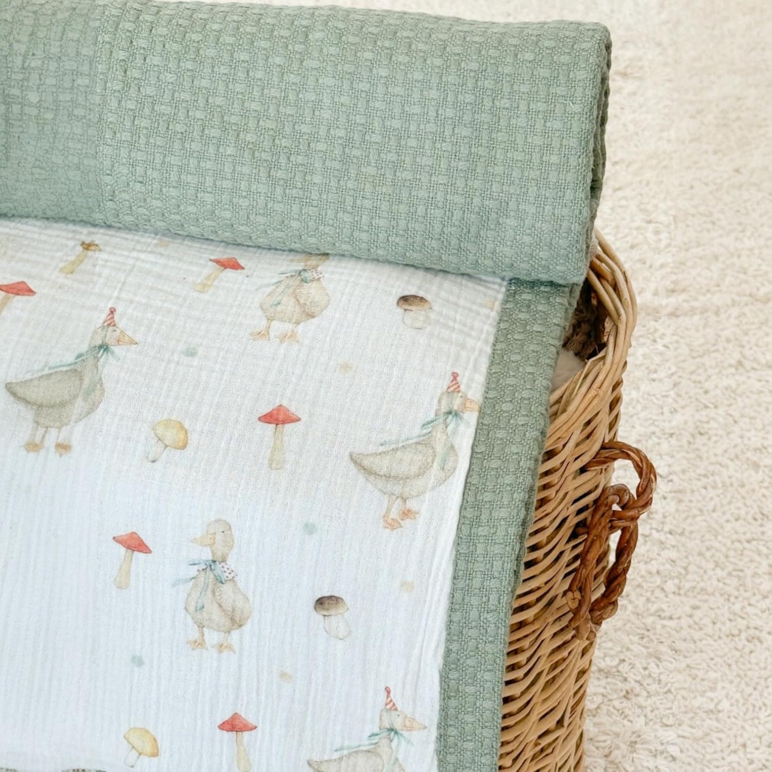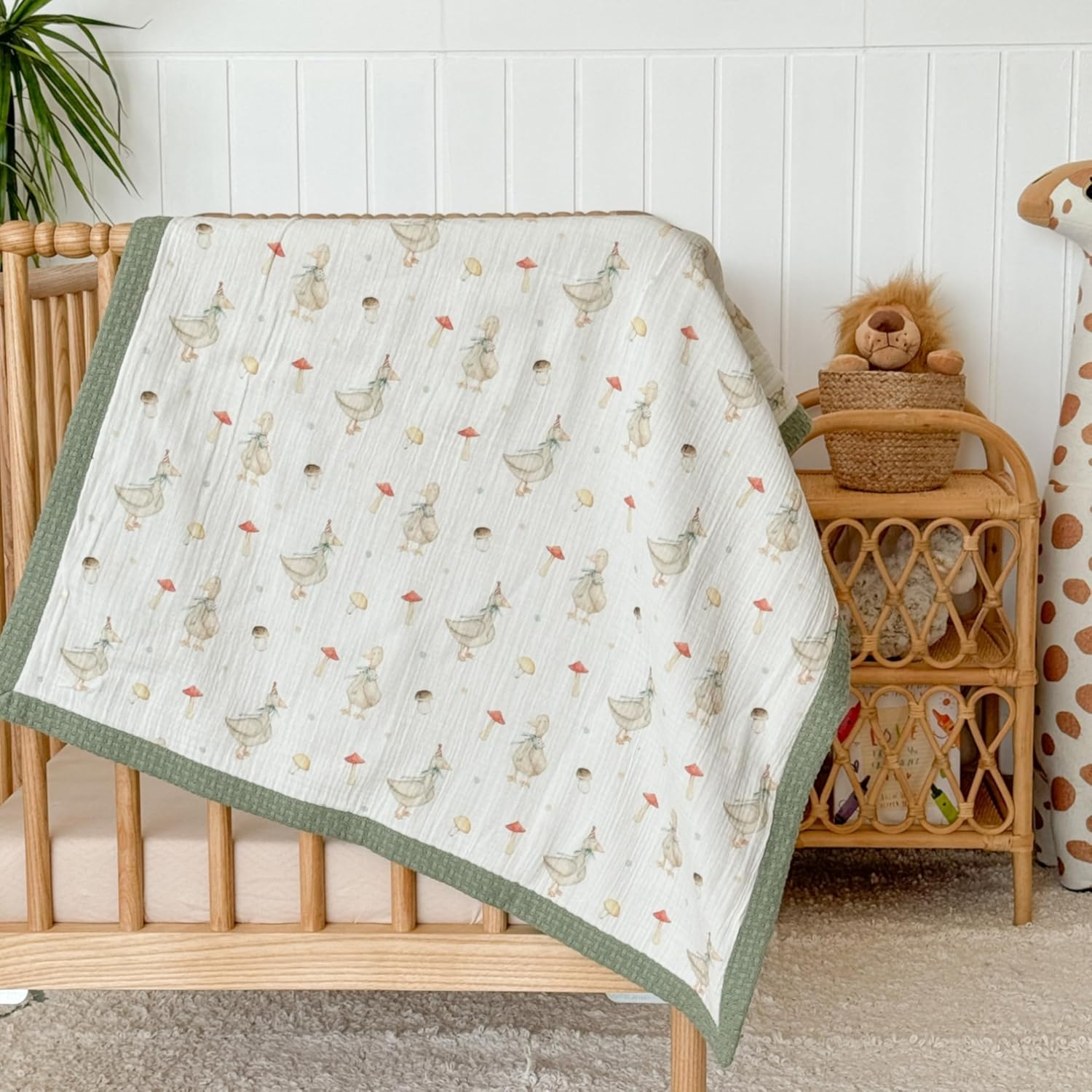 Personalized Baby Blanket with Name – Handmade 100% Organic Cotton Newborn Gift | Custom Knit Blanket for Boys, Girls, Kids & Baby Showers (Sage Green/Goose & Cap)